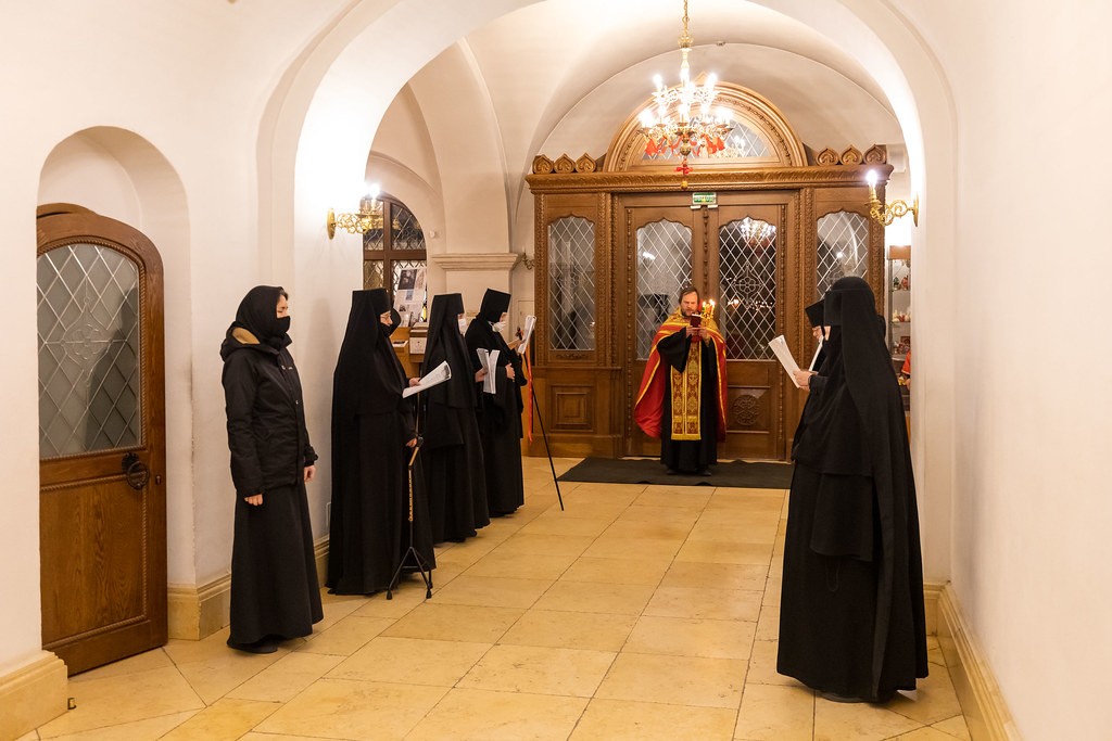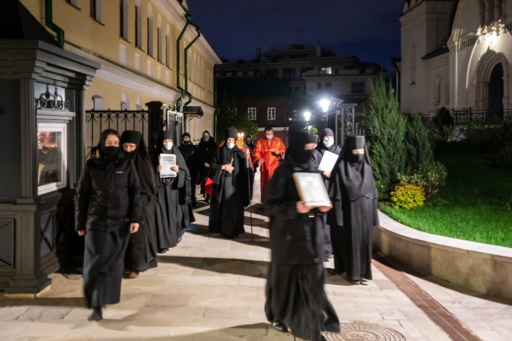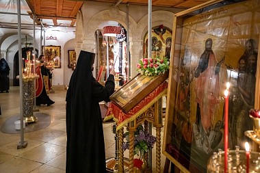 Накануне в Зачатьевском монастыре была отслужена малая вечерня с чтением акафиста преподобным Иулиании и Евпраксии в Казанском приделе собора Рождества Пресвятой Богородицы. Богослужение транслировалось в прямом эфире.