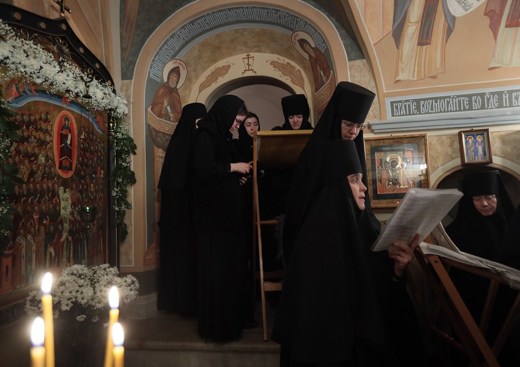 Накануне в храме, освященном в честь всех преподобных, было совершено всенощное бдение. В этот сугубо важный для обители праздник настоятельница монастыря игумения Иулиания (Каледа) читала праздничные стихиры, псалмы, тропари праздничного канона.