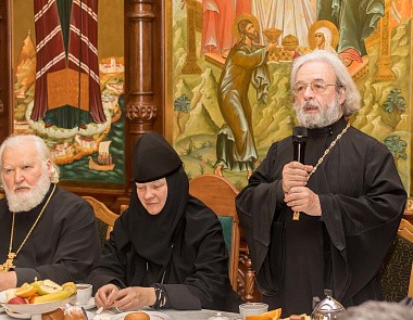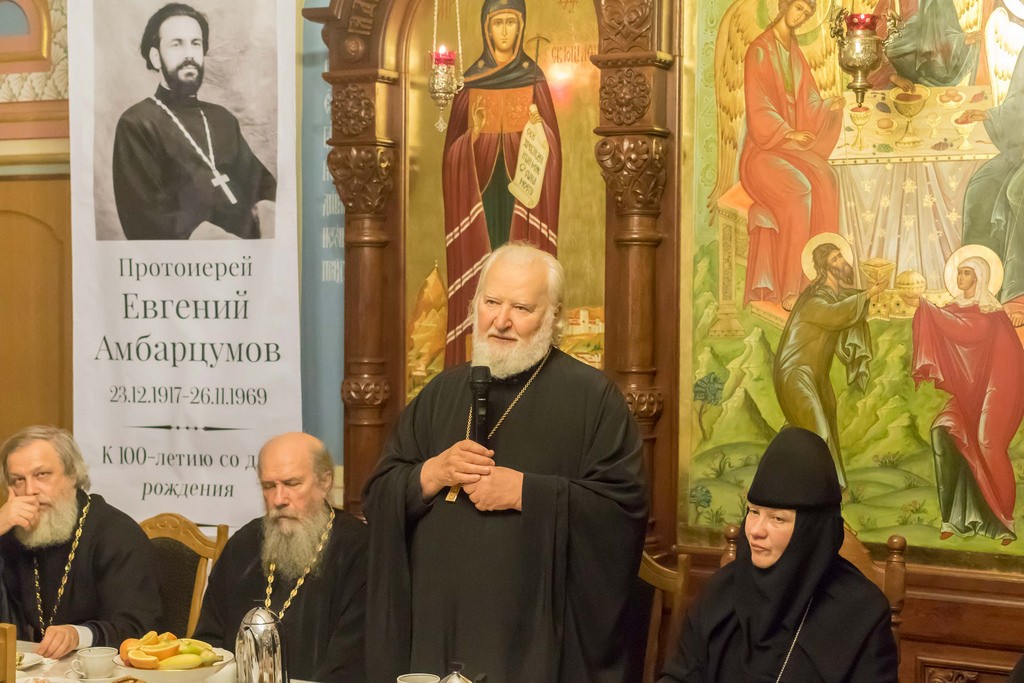 Вечер начался служением заупокойной литии по приснопамятному протоиерею Евгению в Зачатьевском приделе монастырского собора; затем все гости разместились в просторной трапезной за монастырским угощением и поделились воспоминаниями об отце Евгении.