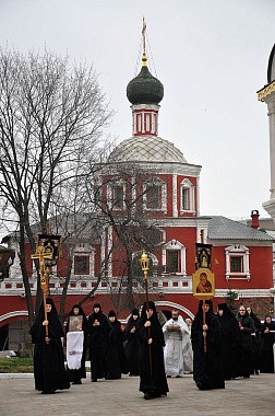Настоятельница Зачатьевской обители выразила благодарность участникам богослужения за принесенные поздравления.