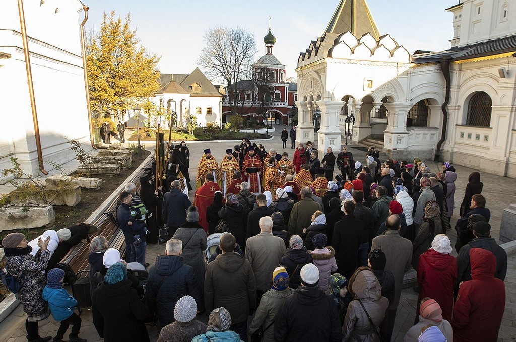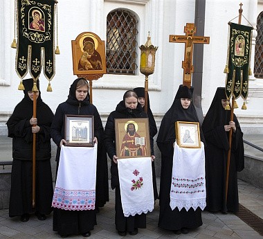 По окончании Литургии ее участники прошли крестным ходом, во время которого состоялось освящение новосооруженного поклонного креста, установленного напротив придела священномученика Владимира Московского в знак почитания подвига новомучеников и исповедников, в том числе священнослужителей и насельниц Зачатьевской обители, пострадавших в годы гонений.