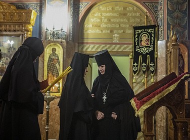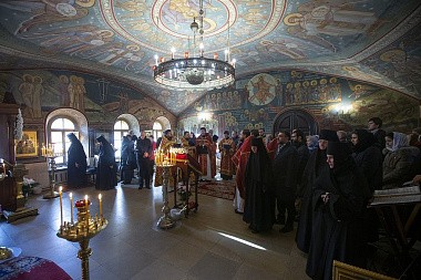 В честь престольного праздника в обители накануне было отслужено торжественное всенощное бдение с литией и крестным ходом вокруг храма Сошествия Святого Духа.