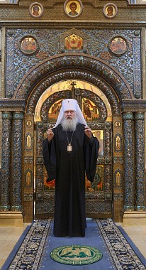 Затем Высокопреосвященнейший владыка огласил поздравительный адрес Святейшего Патриарха Московского и всея Руси Кирилла, направленный игумении Иулиании (Каледе) по случаю 25-летия монашеского пострига.