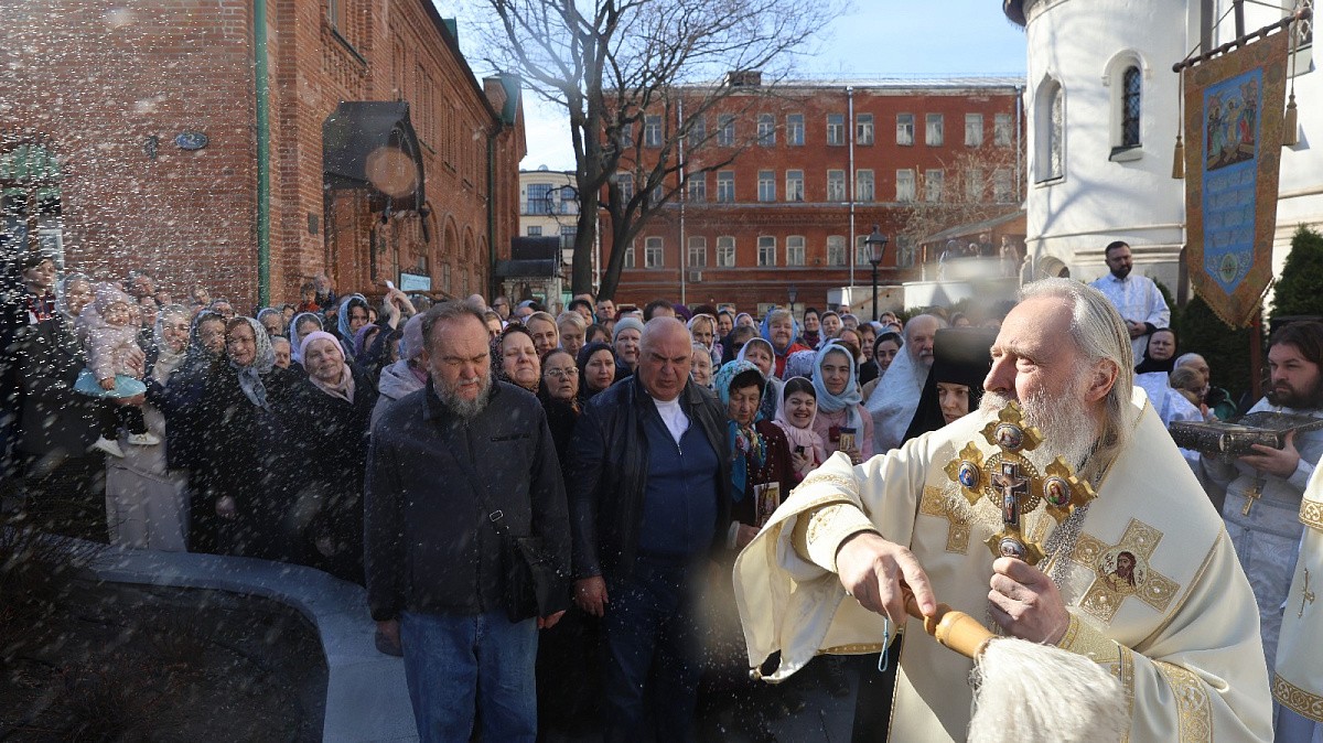 Богослужебные песнопения исполнил хор Зачатьевского монастыря.