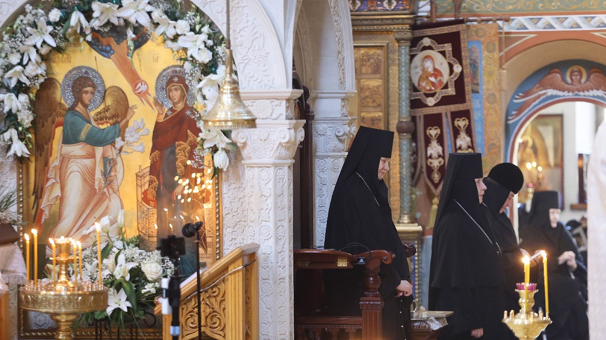 За Литургией молились заместитель председателя Синодального отдела по монастырям и монашеству, настоятельница Зачатьевского ставропигиального женского монастыря игумения Иулиания (Каледа), настоятельница Богородице-Рождественского ставропигиального женского монастыря игумения Викторина (Перминова), настоятельница Никитского женского монастыря г. Каширы игумения Магдалина (Чекулаева), настоятельница Никитского женского монастыря д. Бывалино игумения Капитолина (Филиппенко), настоятельница женского монастыря Святых Жен-Мироносиц г. Бобруйска (Бобруйская епархия) игумения Параскева (Ельская), сестры, многочисленные прихожане и гости обители.
