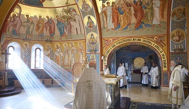 За Божественной литургией Его Высокопреосвященству сослужили настоятель храма Троицы Живоначальной на Грязях, у Покровских ворот протоиерей Иоанн Каледа и монастырское духовенство.