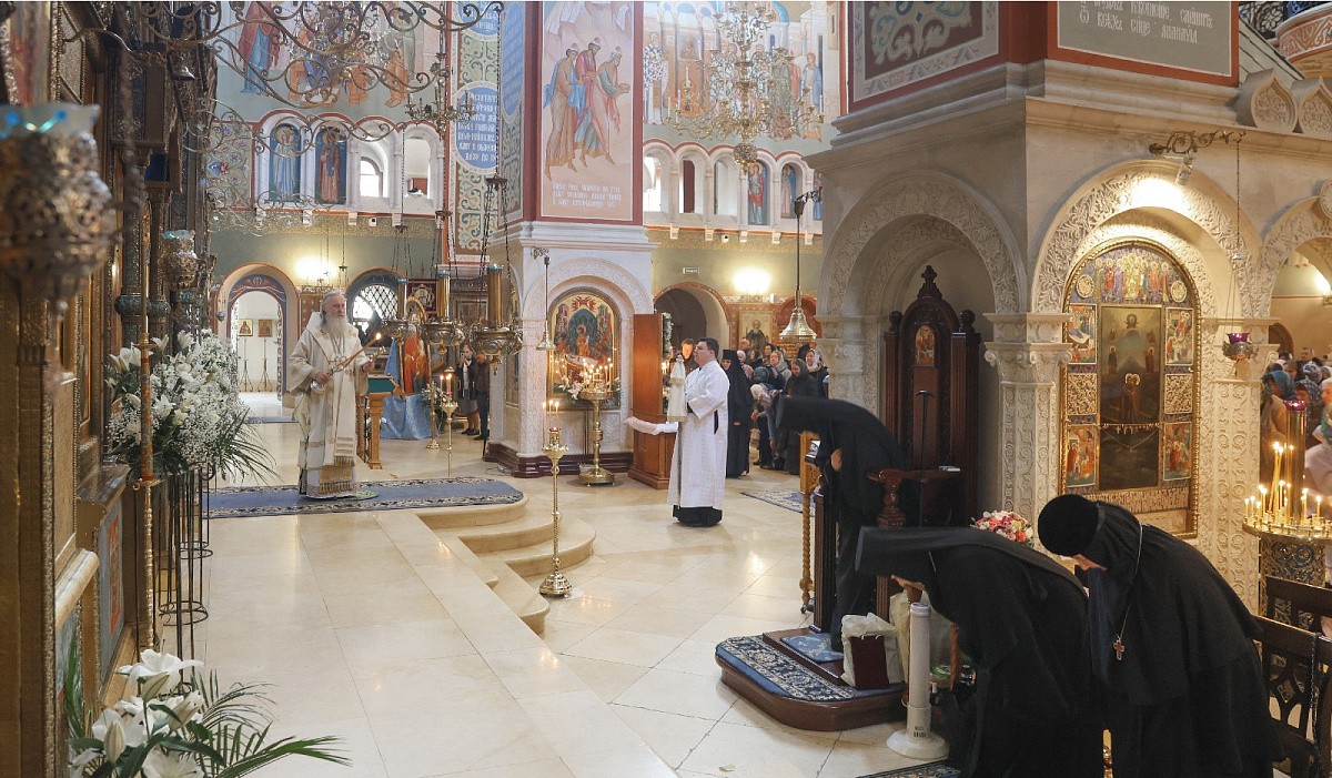 По окончании богослужения митрополит Феогност возглавил крестный ход вокруг собора Рождества Пресвятой Богородицы. После чего было совершено славление святому праведному Лазарю, епископу Китийскому.