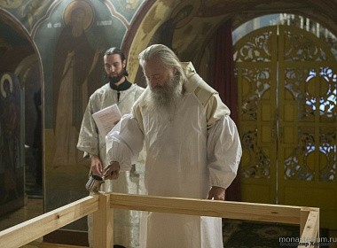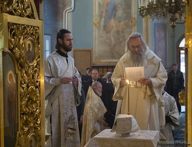 Его Высокопреосвященству сослужили исполняющий обязанности наместника обители иеромонах Даниил (Константинов), заместитель председателя Синодального отдела по монастырям и монашеству архимандрит Стефан (Тараканов), насельники монастыря в священном сане.