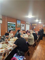 После погружения в крещенскую воду всем паломникам предлагалась горячая трапеза в паломнической трапезной.