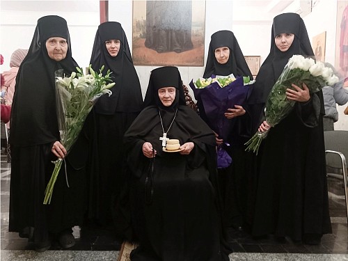 По окончании Литургии священнослужители, монахини и миряне поздравили матушку Неониллу с праздником ее первой небесной покровительницы. Хор спел многолетие Святейшему Патриарху Кириллу и игумении Неонилле с сестрами.