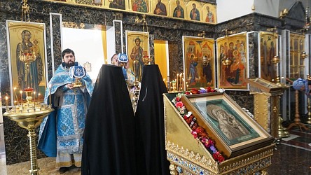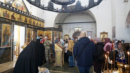 Много людей причастились Святых Христовых Таин, священники в проповедях рассказали собравшимся прихожанам и паломникам об истории праздника, прочли молитву перед иконой, помещенной на центральном аналое.