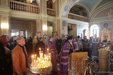 По окончании Божественной литургии епископ Пантелеимон в своем слове поблагодарил игумению Фаину за приглашение посетить монастырь и передал молящимся благословение Святейшего Патриарха Кирилла и поздравление со второй Неделей Великого поста.