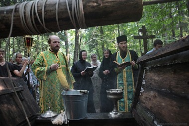 По прибытии на святое место был отслужен молебен с водосвятием, после чего все участники крестного хода имели возможность совершить омовение водой из сохранившегося до наших дней святого колодца, вырытого самим св. прп. Зосимой, вода из которого, как свидетельствуют сами прихожане монастыря, считается целебной.