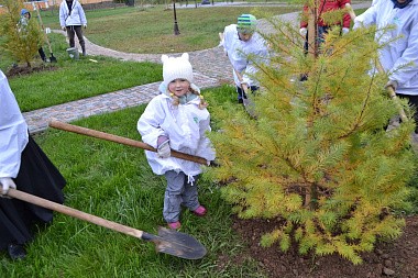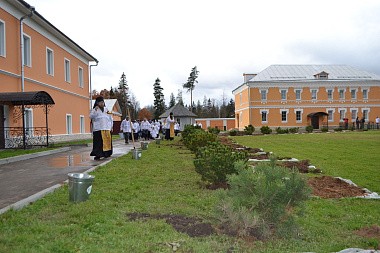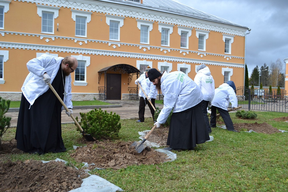Ранее специалистами Федерального агентства лесного хозяйства был разработан план озеленения территории монастыря, составленный с учетом климатических особенностей, состава почвы и требований ландшафтного дизайна. Дендрологами было принято решение о высадке на территории обители саженцев горной сосны, плакучей ивы и канадского клена. Всего к высадке предназначалось более восьмидесяти деревьев.