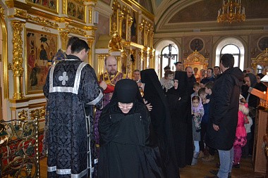 В субботу вечером в обители было отслужено торжественное всенощное бдение, во время которого сестры и прихожане совершили поклонение чтимому образу преподобной Марии.