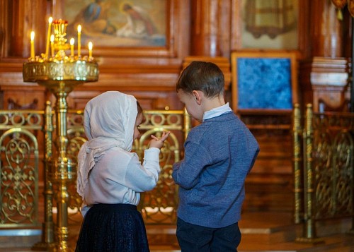 За богослужением молились дети разных возрастов. Ребята пели и помогали в алтаре в ходе всего богослужения. Молодые пономари трудились в алтаре под началом летчика-космонавта Валерия Григорьевича Корзуна. Детским хором руководила преподаватель воскресной школы Яна Станиславовна Немцева.