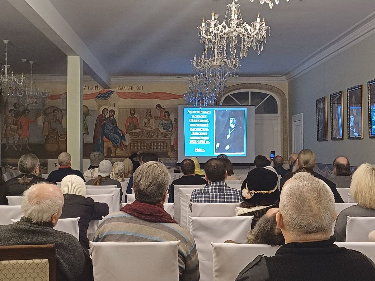 Выступление сопровождалось показом слайд-презентации, где были представлены уникальные фотографии Донского монастыря начала XX века, а также фотографии настоятелей и братии 1920-1930-х годов, которые хранятся в архивах УФСБ Российской Федерации.