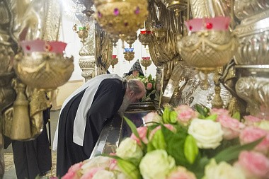 По прибытии в обитель высокие гости проследовали в Покровский храм обители, где поклонились честным мощам блаженной старицы Матроны Московской.