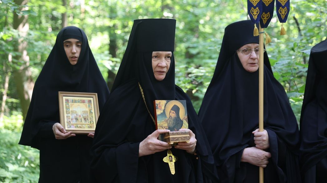 По окончании Литургии был совершен крестный ход по всему участку, с пением заупокойной литии на месте расположения землянки, где укрывались в 30-е годы XX века насельницы закрытого монастыря.