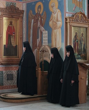 За богослужением молились председатель Синодального отдела по монастырям и монашеству, наместник Троице-Сергиевой лавры архиепископ Сергиево-Посадский Феогност, настоятельница Покровского монастыря игумения Олимпиада (Баранова), насельницы обители и воспитанницы монастырского приюта.