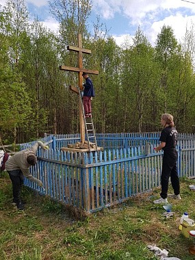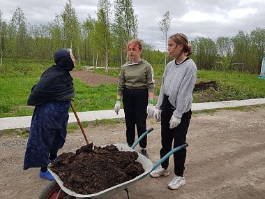 Курсанты отряда «Феникс» Военно-патриотического центра «Вымпел» и «серебряные» волонтеры «Группы милосердия» Совета ветеранов Ломоносовского округа Архангельска провели субботник на Покровском женском подворье Спасо-Преображенского Соловецкого ставропигиального мужского монастыря в Радове.
