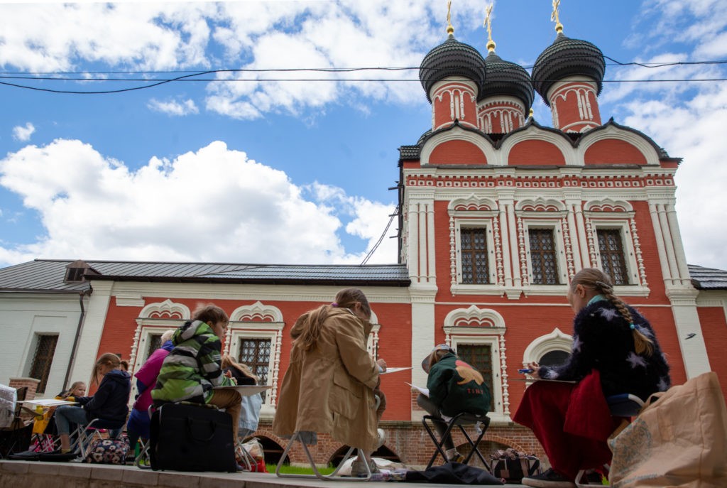 «Наша детская изо-студия существует при московском музее современного искусства с 2003 года. По сложившейся доброй традиции каждый июнь, начиная с 2004 года, мы с детьми приходим в Высоко-Петровский монастырь, который находится буквально через дорогу и в течение 10 дней проводим пленэр на территории древней обители. Здесь всегда тихо, уютно и безопасно, что, безусловно, способствует творческим начинаниям наших ребят. Конечно, перед началом занятий мы знакомим наших юных воспитанников с историей этого места, ведь изучая уникальный архитектурный ансамбль монастыря, его фрески и иконы дети на практике видят всё то, что в течение учебного года мы преподавали им на уроке истории искусств», – рассказала о сотрудничестве с монастырем руководитель арт-студии Галактионова Светлана.