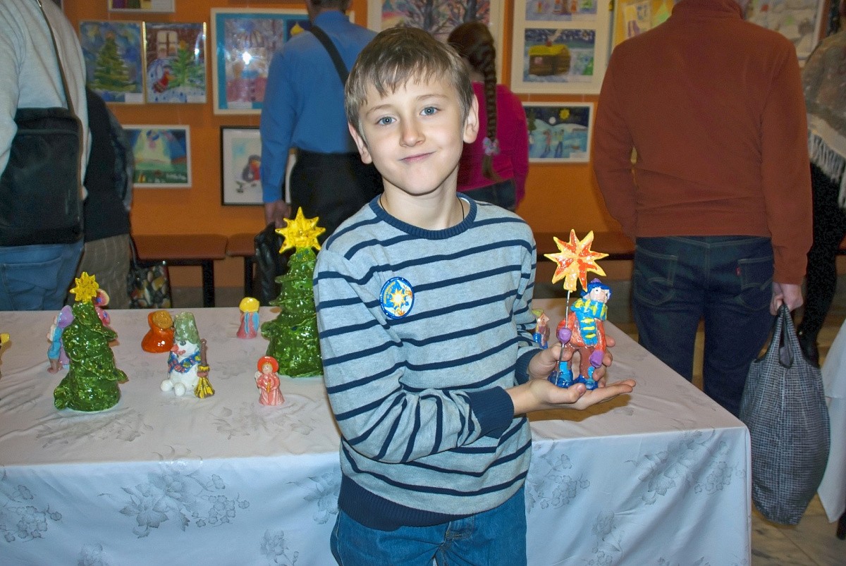 На выставке «Божий мир глазами ребенка», организованной в рамках фестиваля, были представлены художественные работы юных угрешских живописцев и глиняных дел мастеров. Учащиеся студии поделились со зрителями своим видением евангельских событий, происходивших более двух тысяч лет назад в далеком палестинском городе Вифлееме, которому суждено было стать свидетелем рождения Богомладенца. Красочные картины и керамические поделки воспитанников педагога студии Людмилы Лактюшиной заняли достойное место не только среди многочисленных работ, представленных на выставке православными детскими коллективами Центрального и Южного викариатств города Москвы, но и в сердцах зрителей, которые благодарили ребят за чудесные работы.