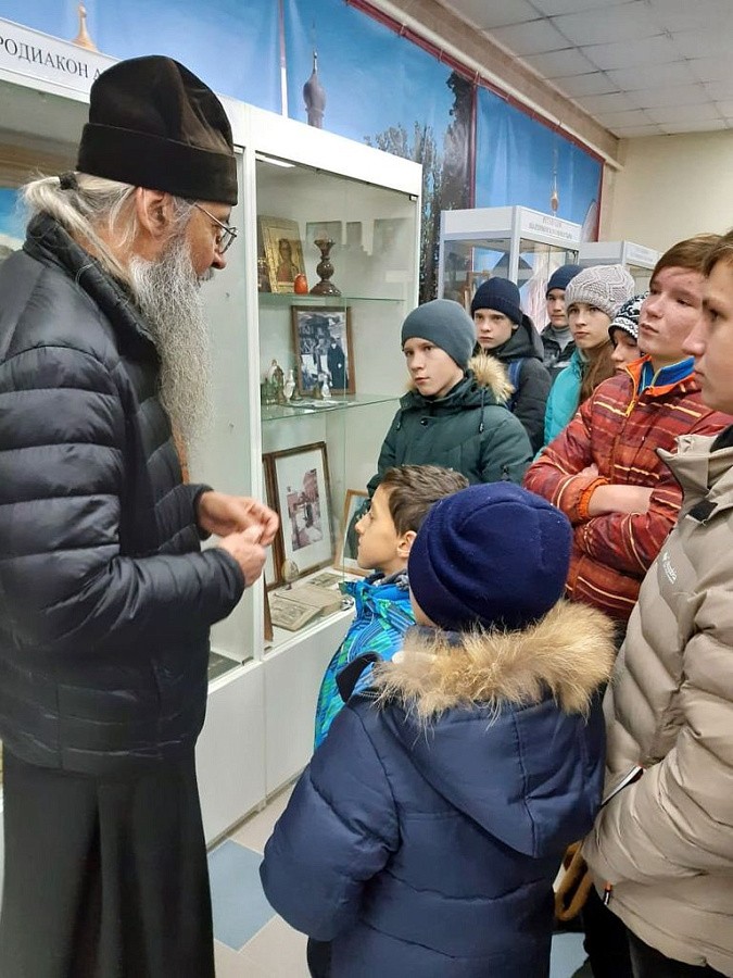 В музее монастыря игумен Владимир рассказал ребятам о трагичных событиях, которые разворачивались в стенах обители в ХХ веке. Особенно поразил слушателей жизненный путь схииеродиакона Антония (Семенова). Этот человек 23 апреля 1994 года, на 6-й седмице Великого поста, принял схиму с именем Антоний. Потерявший зрение в ГУЛАГе, он с Божией помощью чудом остался в живых и странствовал по России почти всю жизнь. Бог наградил старца даром прозорливости. Многие его предсказания сбывались, по его молитвам люди обретали исцеление. 19 декабря 1994 года старец отошел ко Господу и по его последней воле был похоронен с северной стороны храма великомученицы Екатерины. Посетив могилу схииеродиакона Антония, угрешские паломники отправились в обратный путь.