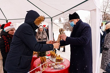 26 декабря возле стен Данилова монастыря состоялась предрождественская благотворительная ярмарка и игровая площадка "Играй с нами перед Рождеством". Гостям ярмарки юные волонтёры предлагали ароматный травяной чай и много вкусной постной выпечки, цукаты и свечи из воска, деревянные ёлочные игрушки и авторские блокноты, картины художника-акварелиста, вязаные игрушки для детей и посуду ручной работы. Возле уютного шатра команда игротехников проводила подвижные игры и угощала конфетами детей. Благодаря активности наших юных волонтёров и родителей собранная сумма выросла до 76 804 рублей.