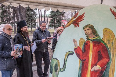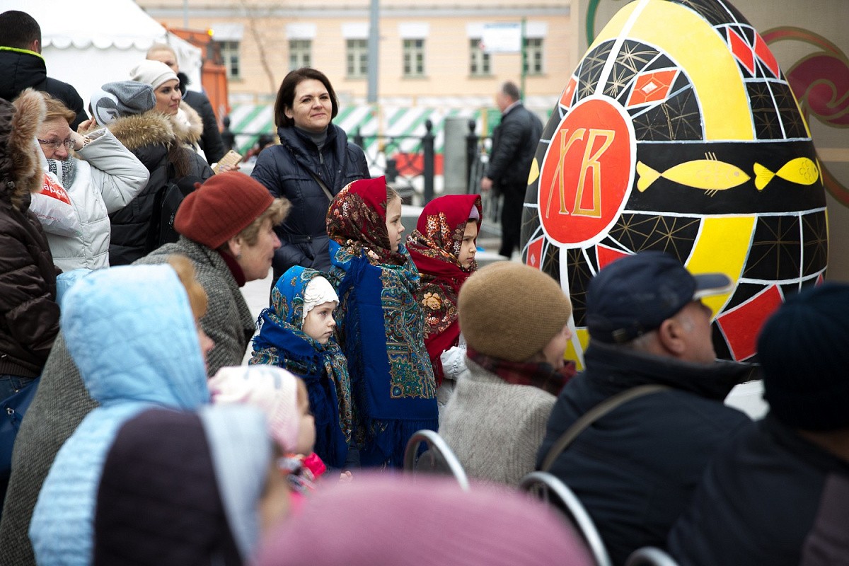 Самым ярким действом Петровского Пасхального фестиваля стал конкурс росписи двухметровых пасхальных яиц. В конкурсе участвовало 20 команд от художественных студий, колледжей и кадетских школ Москвы.