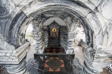 При ее строительстве часовни использовался серый полосчатый карельский мрамор (из карьера Рускеалы) и более скромный серый гранит, добытый на островах в северной части Ладоги.