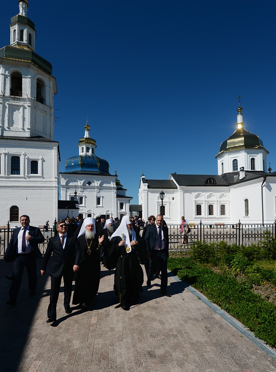 Вместе с Его Святейшеством в монастырь прибыли управляющий делами Московской Патриархии митрополит Санкт-Петербургский и Ладожский Варсонофий, митрополит Тобольский и Тюменский Димитрий, а также представители государственной власти: временно исполняющий обязанности губернатора Тюменской области В.В. Якушев, вице-губернатор Тюменской области С.М. Сарычев, председатель Тюменской областной Думы С.Е. Корепанов и глава администрации г. Тобольска В.В. Мазур.