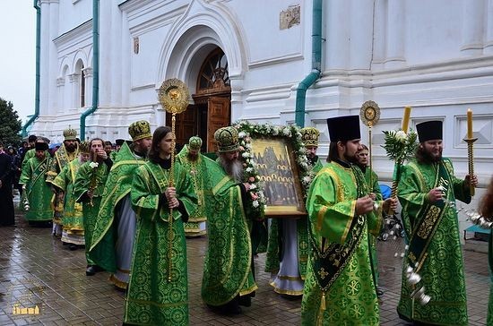 По окончании Литургии состоялся крестный ход вокруг Успенского собора Лавры.