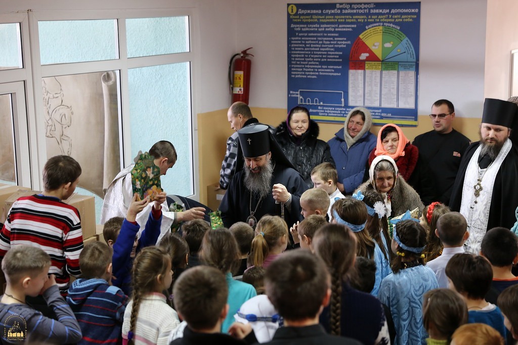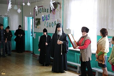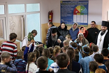 Каждой школе архиепископ Арсений преподал в благословение образ Божией Матери Святогорской, а всем учащим и учащимся вручил рождественские подарки.