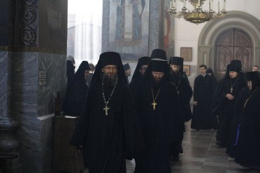 По окончании Божественной литургии епископ Порфирий обратился со словом ко всем настоятелям и настоятельницам Белорусского Экзархата. В нем Его Преосвященство заметил, что у каждого из нас есть какие-то немощи и несовершенства, и только любовью, а не резким словом, можно подвигнуть человека к духовной жизни, подвигу. В подтверждение Владыка привел пример кротости и любви приснопамятного архимандрита Софрония (Сахарова), который не один год провел на Святой Горе, а позже основал обитель в Англии. Теплое, доброе слово отца Софрония давало силы насельникам дальше жить, дальше служить, дальше приносить плоды монашеской жизни.