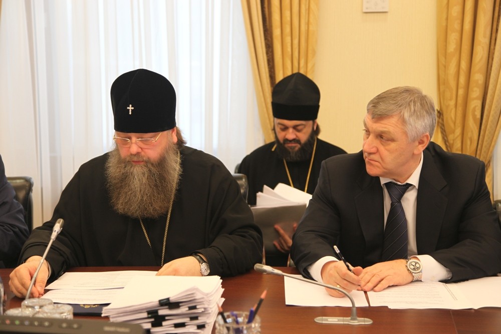 От Русской Православной Церкви участвовали: председатель Синодального отдела религиозного образования и катехизации митрополит Ростовский и Новочеркасский Меркурий (с докладом — «План международных и общероссийских мероприятий и календарь памятных дат празднования 700-летия со дня рождения преподобного Сергия Радонежского»); председатель Учебного комитета Русской Православной Церкви, ректор Московских духовных школ архиепископ Верейский Евгений (с докладами — «О подготовке Московской духовной академии к празднованию 200-летия ее пребывания в Свято-Троицкой Сергиевой лавре» и «О реконструкции инженерных сетей Свято-Троицкой Сергиевой лавры и Московской академии»), председатель Синодального отдела по монастырям и монашеству, наместник Троице-Сергиевой лавры архиепископ Сергиево-Посадский Феогност (с докладом — «Об организации участия паломников в юбилейных торжествах в Свято-Троицкой Сергиевой лавре, посвященных 700-летию со дня рождения преподобного Сергия Радонежского»); руководитель Административного секретариата Московской Патриархии епископ Солнечногорский Сергий (с докладом — «Об организации крестного хода от Варницкого ставропигиального мужского монастыря Ярославской области к Свято-Троицкой Сергиевой лавре»); заместитель председателя Синодального отдела религиозного образования и катехизации игумен Митрофан (Шкурин).
