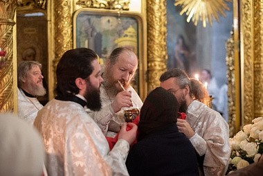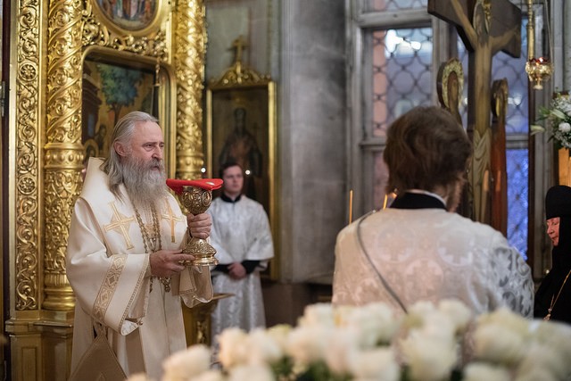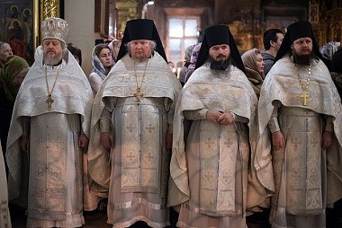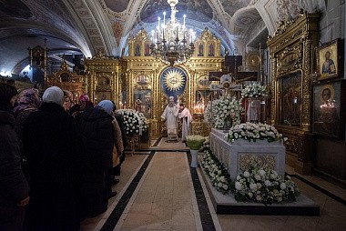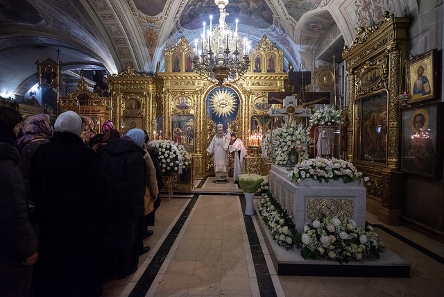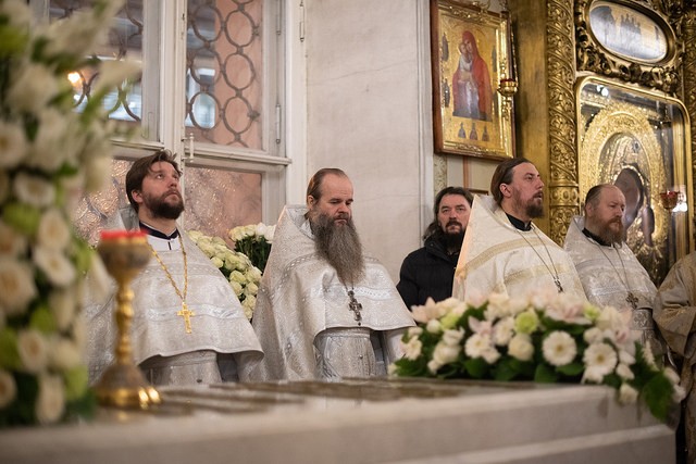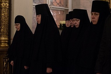 За богослужением среди прочих молились настоятельницы ряда ставропигиальных женских монастырей, в частности Богородице-Рождественского – член Коллегии СОММ игумения Викторина (Перминова), Борисоглебского Аносина – игумения Мария (Солодовникова), Алексеевского – руководитель Юридической службы Московской Патриархии игумения Ксения (Чернега).