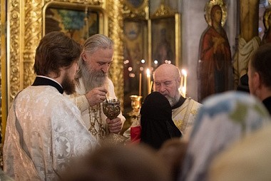 Проповедь по запричастном стихе произнес игумен Филипп (Ельшин).