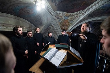 Церковные песнопения исполнил братский хор Троице-Сергиевой лавры под управлением игумена Силуана (Баранова).
