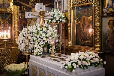 По окончании Литургии архиерей отслужил панихиду у места погребения Святейшего Патриарха Алексия II.