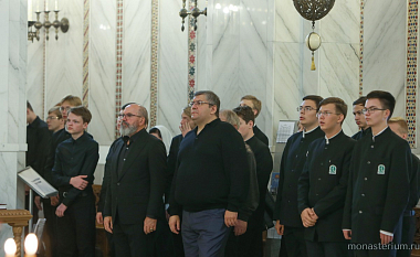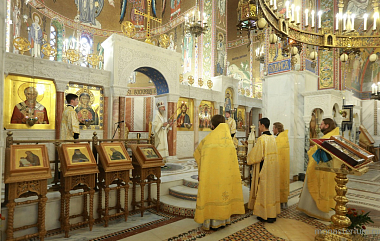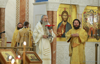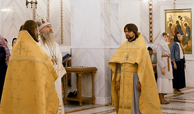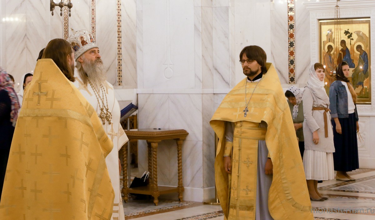 За богослужением Его Высокопреосвященству сослужили настоятель Троице-Сергиева Варницкого мужского монастыря игумен Пимен (Артюхов), директор Варницкой православной гимназии иерей Димитрий Диденко, клирик Покровского храма в Ясеневе иерей Сергий Романов.