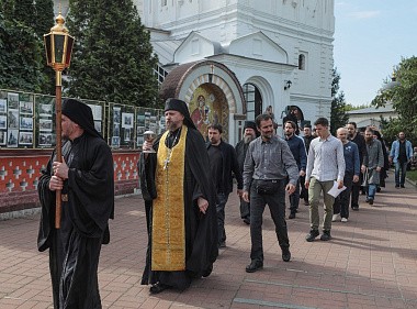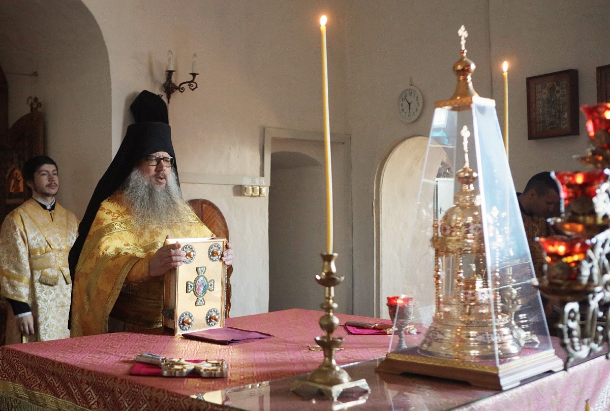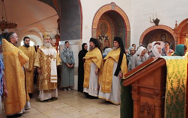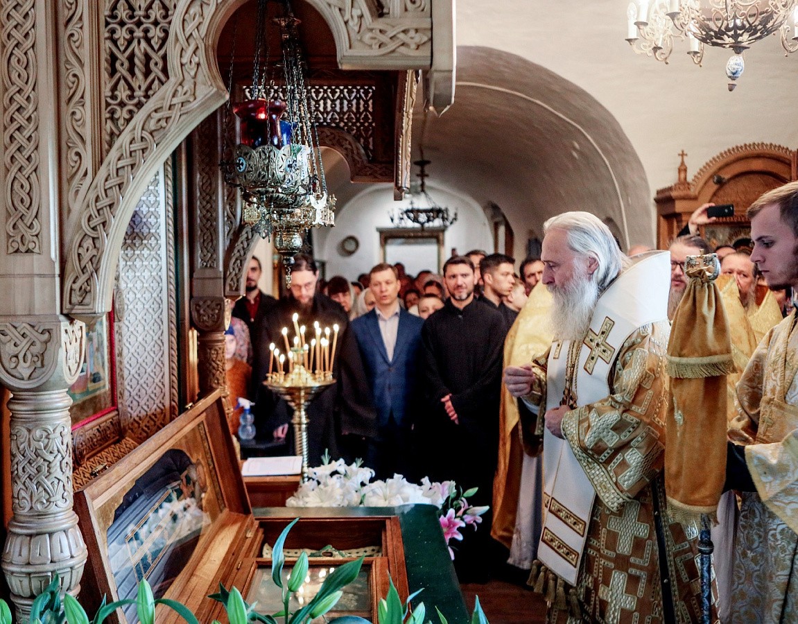 Его Высокопреосвященству сослужили и. о. настоятеля подворья иеромонах Никита (Смернягин) с братией в священном сане.