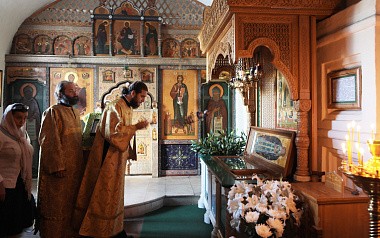 По окончании Литургии духовенство совершило славление прп. Аристоклию Афонскому перед его честными мощами.