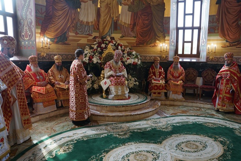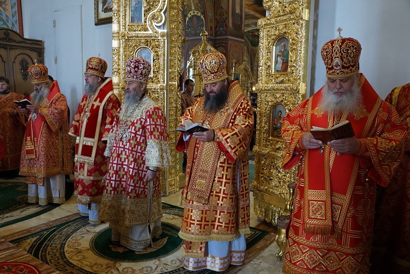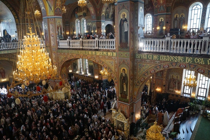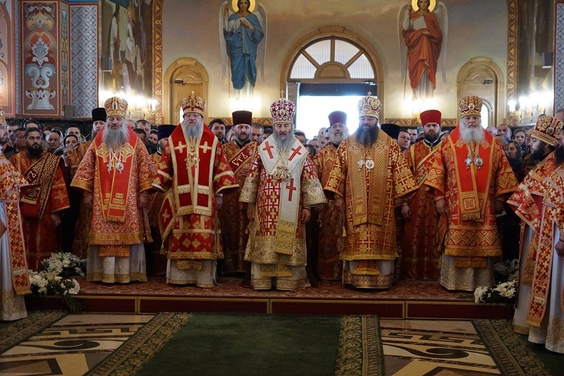 Его Блаженству сослужили митрополит Черновицкий и Буковинский Мелетий, наместник обители архиепископ Банченский Лонгин, епископ Шепетовский и Славутский Евсевий, епископ Хотинский Вениамин, духовенство монастыря.