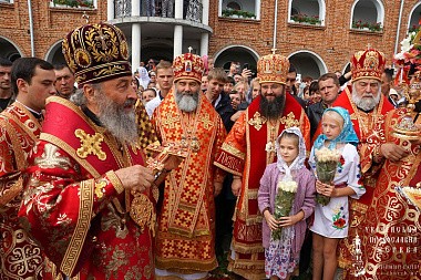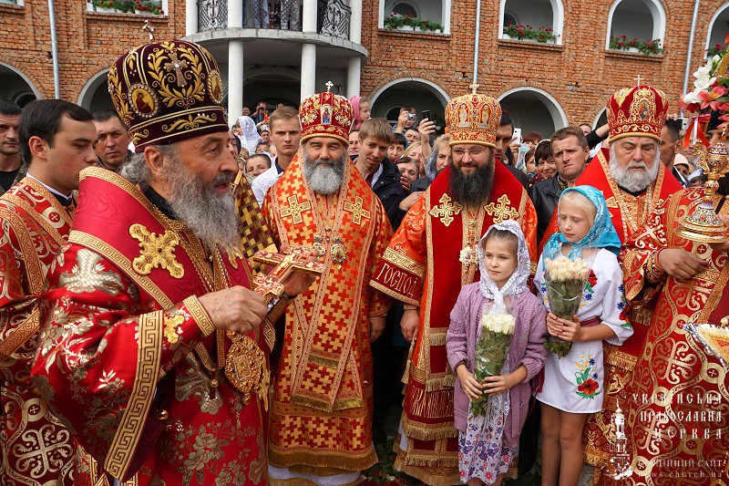 Его Блаженству сослужили: митрополит Хустский и Виноградовский Марк; митрополит Каменец-Подольский и Городокский Феодор; митрополит Могилев-Подольский и Шаргородский Агапит; архиепископ Черновицкий и Буковинский Мелетий; епископ Банченский Лонгин; епископ Конотопский и Глуховский Роман; епископ Ирпенский Климент; епископ Шепетовский и Славутский Евсевий; епископ Ивано-Франковский и Коломыйский Тихон; духовенство монастыря и гости обители в священном сане.