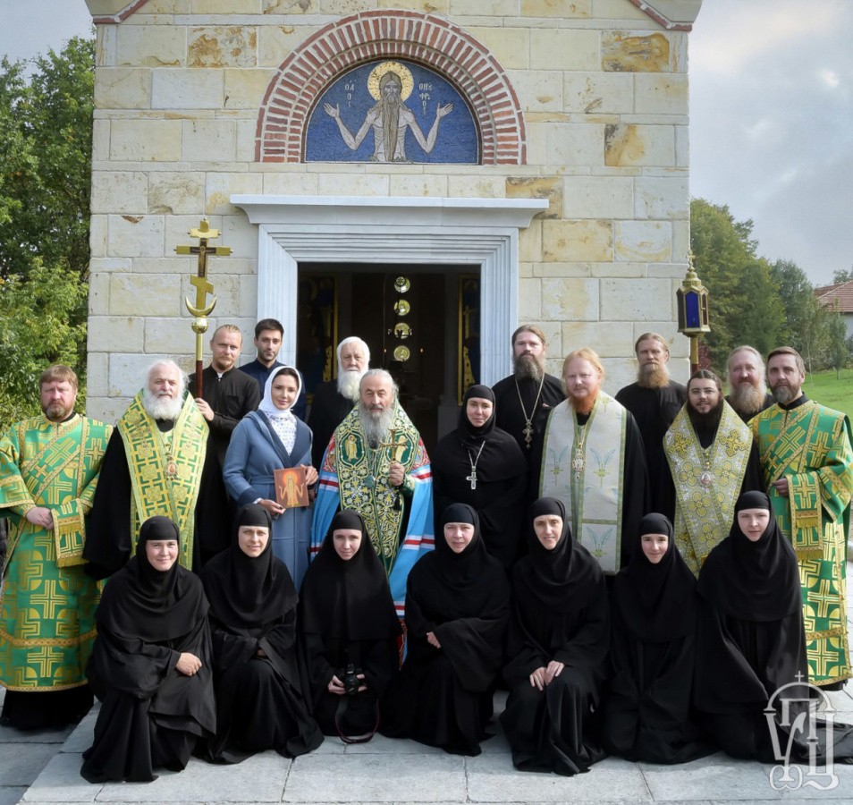 Предстоятелю Украинской Православной Церкви сослужили духовник и строитель обители, викарий Киевской митрополии архиепископ Обуховский Иона, наместник Архангело-Михайловского Зверинецкого монастыря г. Киева епископ Иванковский Кассиан и епископ Бородянский Марк.