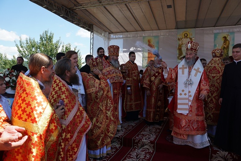 По окончании богослужения митрополит Онуфрий поздравил верующих с праздником и окропил собравшихся освященной водой.