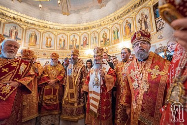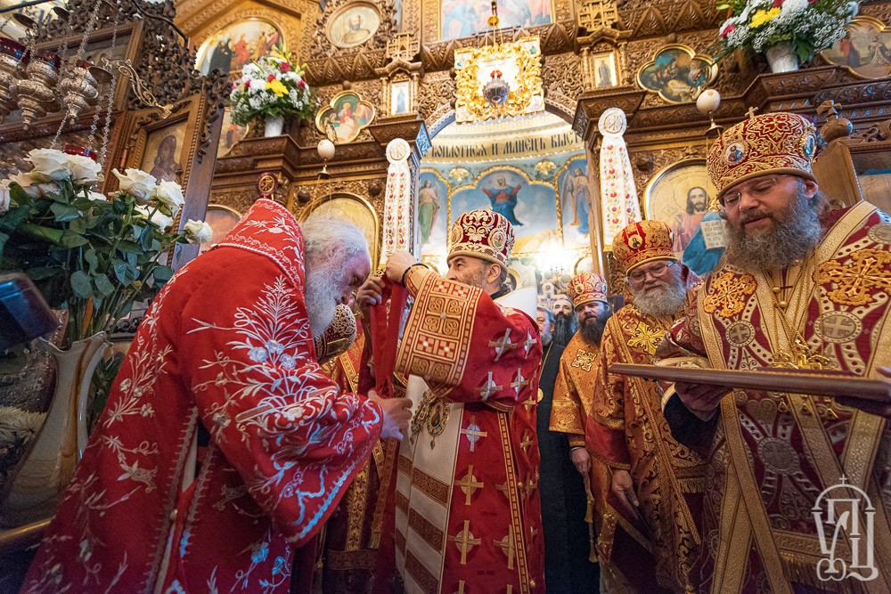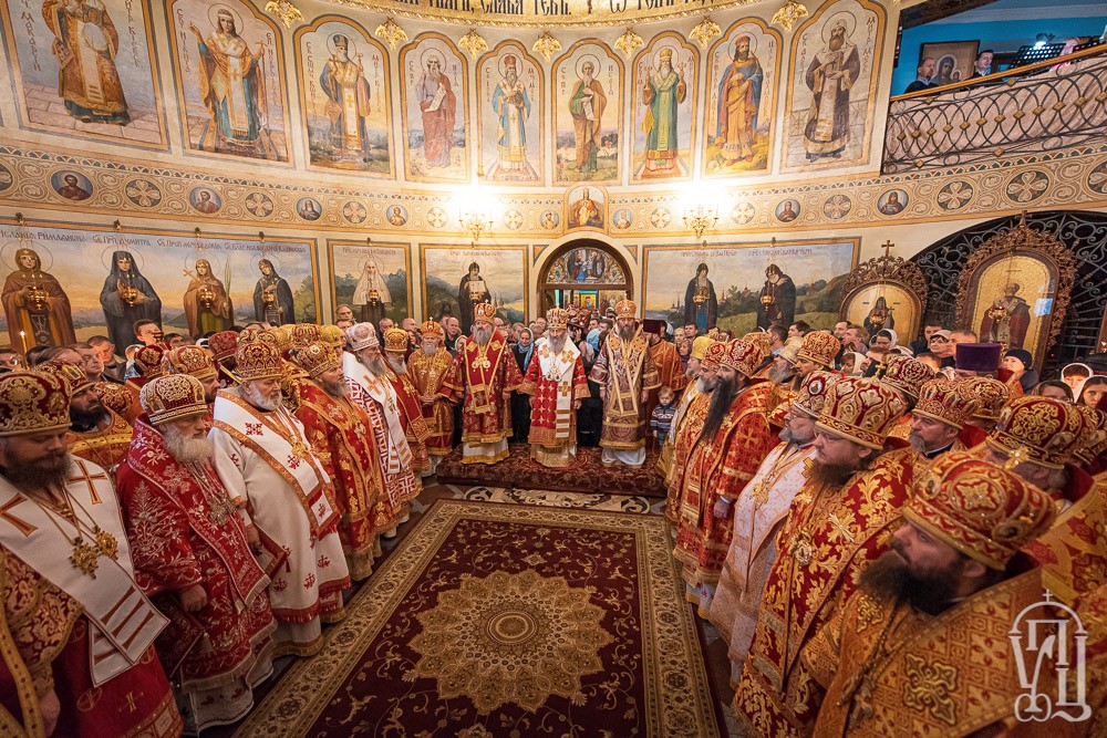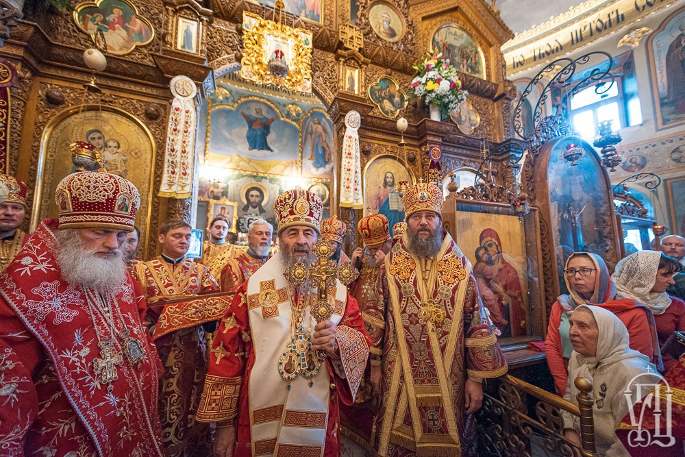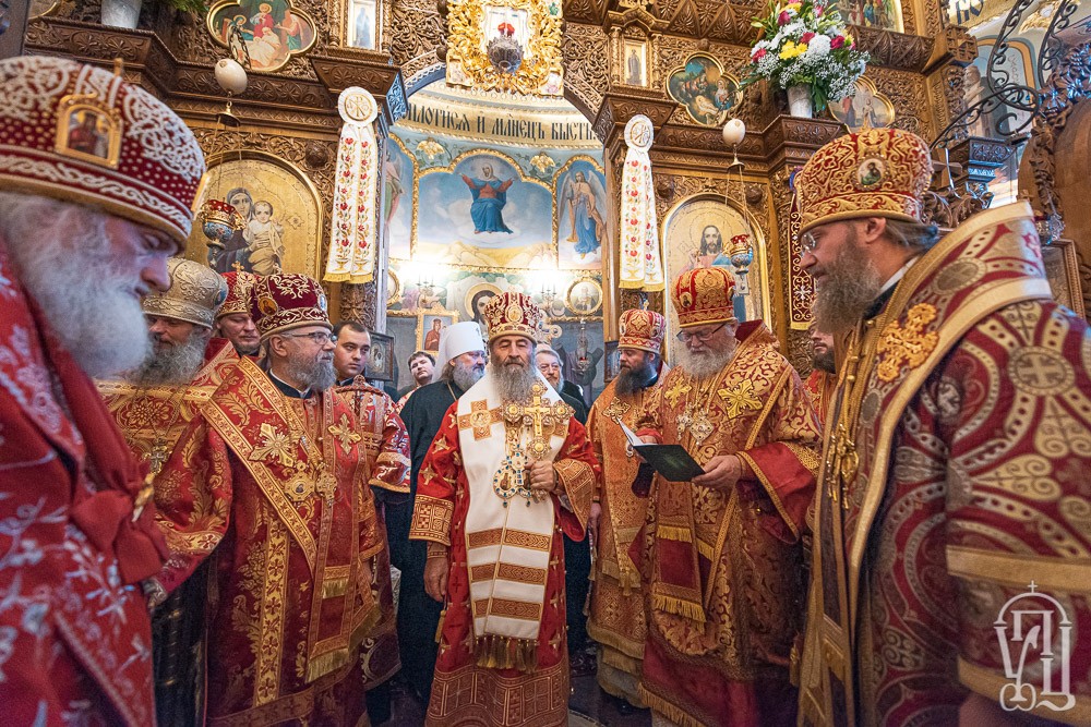 За Литургией Его Блаженству сослужили наместник Киево-Печерской лавры митрополит Вышгородский и Чернобыльский Павел, управляющий делами Украинской Православной Церкви митрополит Бориспольский и Броварской Антоний, митрополит Белоцерковский и Богуславский Августин, митрополит Сарненский и Полесский Анатолий, митрополит Могилев-Подольский и Шаргородский Агапит, митрополит Запорожский и Мелитопольский Лука митрополит Винницкий и Барский Варсонофий, архиепископ Пражский и Чешских земель Михаил, архиепископ Гурий (Кузьменко) архиепископ Бучанский Пантелеимон, архиепископ Городницкий Александр, архиепископ Боярский Феодосий, наместник обители архиепископ Фастовский Дамиан, архиепископ Александрийский и Светловодский Боголеп, архиепископ Арцизский Виктор, епископ Единецкий и Бричанский Никодим, епископ Васильковский Николай, епископ Золотоношский Иоанн, епископ Барышевский Виктор, епископ Ладыжинский Сергий, гости в священном сане и духовенство монастыря.
