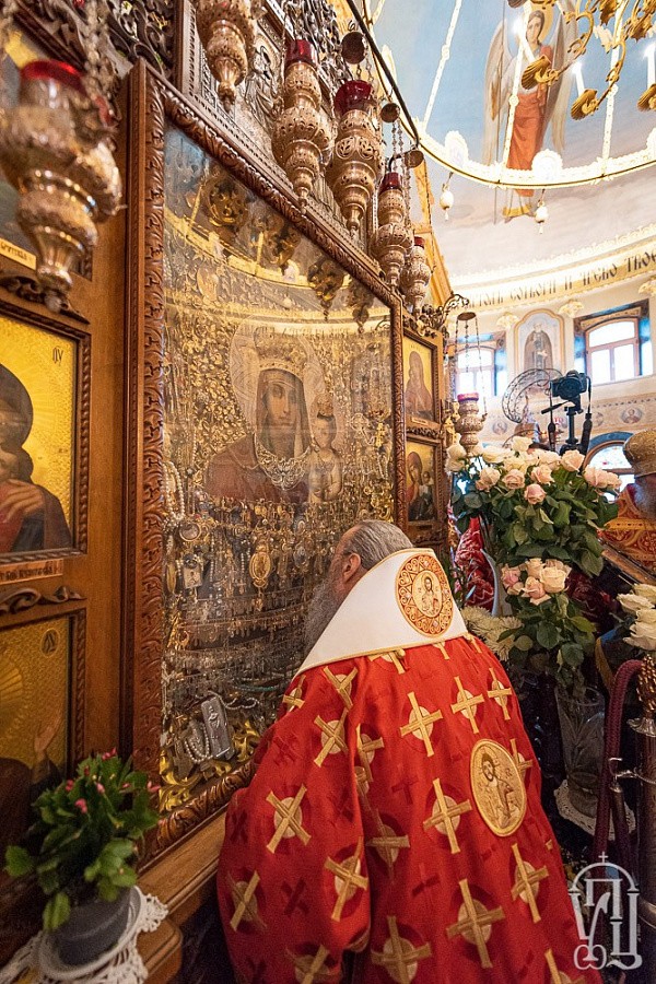 По окончании Литургии священнослужители совершили чин славления перед чудотворной иконой Богородицы «Призри на смирение».