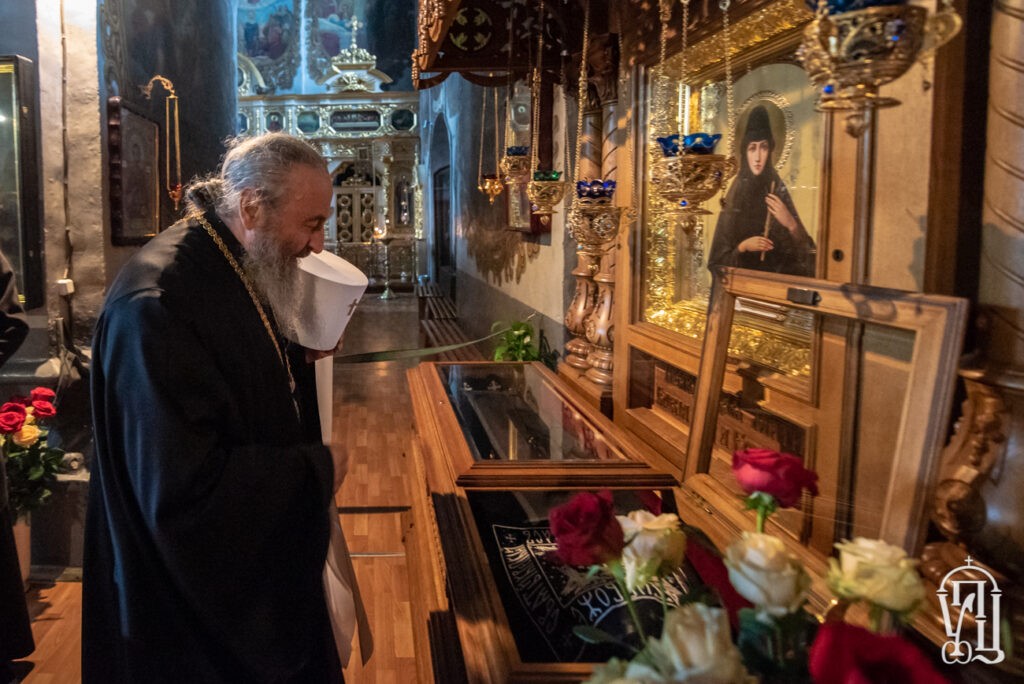 По окончании заупокойного богослужения Блаженнейший митрополит Онуфрий поклонился святыням обители и ознакомился с ходом ремонтно-реставрационных работ, которые ведутся в монастыре.